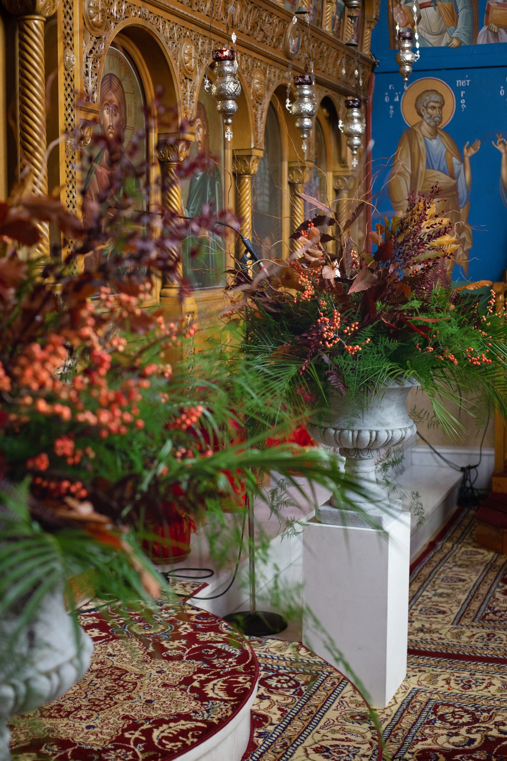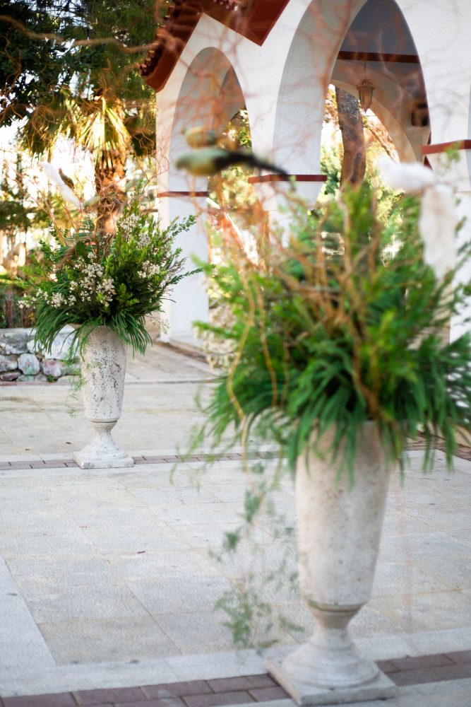 Το προαύλιο της εκκλησίας στολίζεται με ψηλούς αμφορείς γεμάτους πράσινα φυλλώματα, λευκά άνθη και άγρια κλαδιά, ενώ στο εσωτερικό του ναού πλούσιες αποξηραμένες συνθέσεις λουλουδιών σε φθινοπωρινές αποχρώσεις δημιουργούν εντυπωσιακή ατμόσφαιρα.Η διακόσμηση της κολυμπήθρας περιλαμβάνει κοραλλί τριαντάφυλλα, χρυσάνθεμα και μοναδικά αποξηραμένα άνθη, συνδυάζοντας floral design βάπτισης, elegant styling και personalized touches. Στο candy bar και τα τραπεζάκια λιχουδιών, donuts, μπισκότα και σπιτικές λιχουδιές περιμένουν για να γλυκάνουν τους καλεσμένους, ενώ οι λεπτομέρειες στο στολισμό βάπτισης κερδίζουν τις εντυπώσεις σε κάθε φωτογραφία.